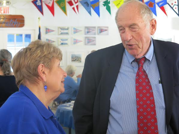Roseman and his family (left foreground) are surrounded by the many friends and well-wishers who packed the Pentwater Yacht Club dining room Thursday evening.